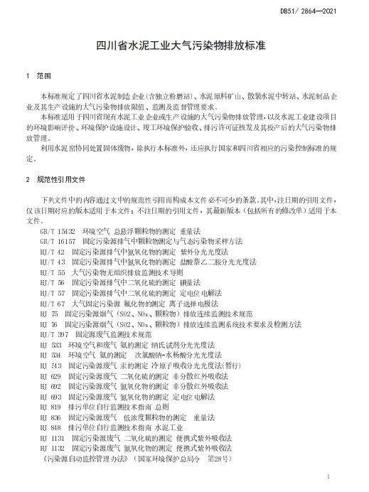 日前,四川发布《四川省水泥工业大气污染物排放标准》,标准于2022年7月1日实施。详情如下:
