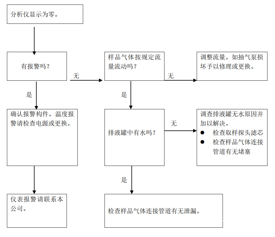 例如,会有逐渐出现工作情况失常;在受到某外力打击后工作状况不佳;突然出现检测反常;切断电源后再度打开时情况异常;由于混入含杂质气体,立刻出现检测失调等等情况产生,即使是同一故障现象,可根据它前后工作情况不同作出是属于部件老化损坏,电气故障,还是属于气体系统故障等不同判断。但是如果属于分析仪故障修理那需要相当复杂高深的技术,尤其分析仪内部故障连同电子部件发生故障时,有时连寻找故障点都相当困难。遇到这类故障情况,还是委托烟气在线监测公司派遣技术员前来维修为好,但下面叙述的内容对于贵客户来说也是十分实用的处理对策,特别在整个样品气体的故障,其故障发生点的寻找,产生原因都比较容易对付,用户可以根据下面给予的对策处理。