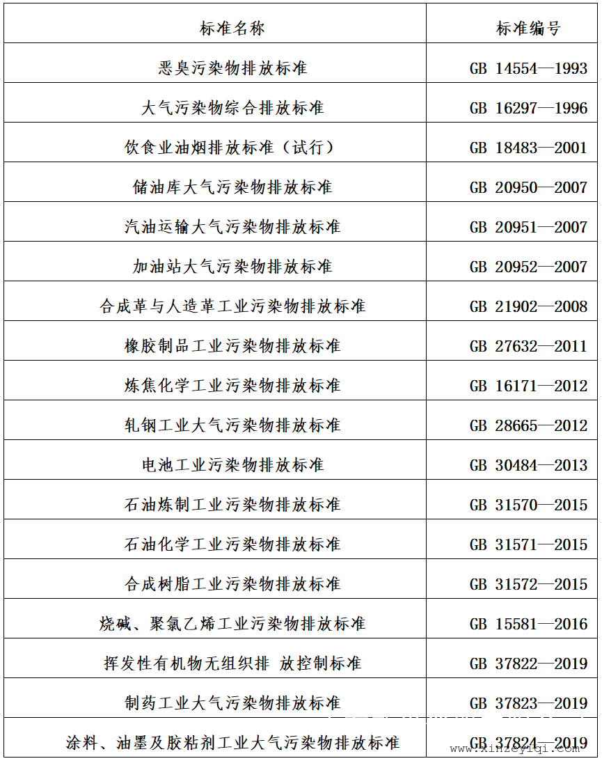 18项挥发性有机物VOCs相关国家排放标准